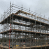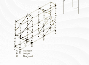 Light duty frames as access scaffold and maximum height upto 30mts, used. Tying to